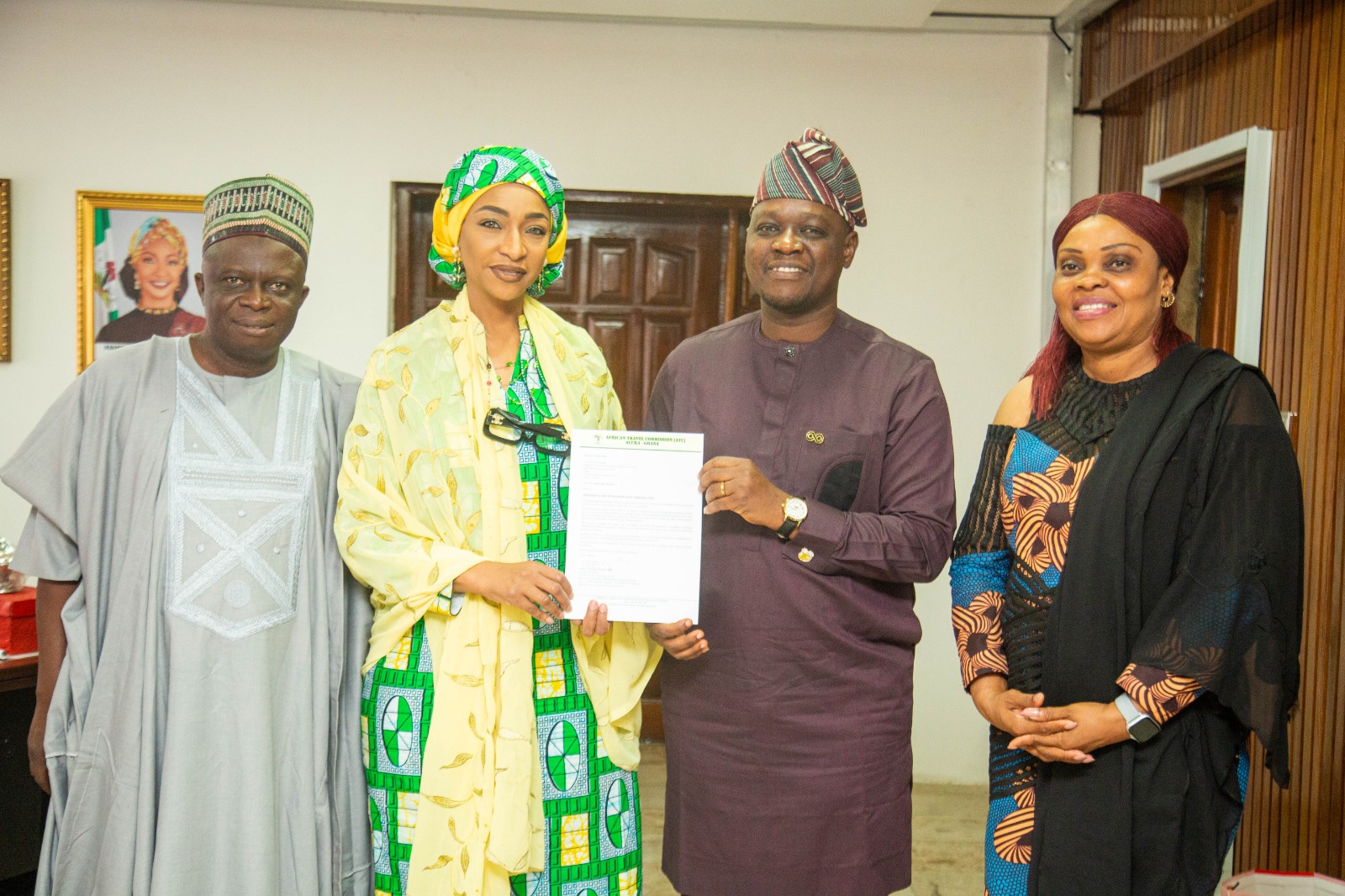 L–R: Dr. Aliyu Badaki, President, Federation of Tourism Associations of Nigeria [FTAN]; Barr. Hannatu Musa Musawa; Dr. Olayiwola Awakan and Mrs. Susan Akporiaye, Board Member, African Travel Commission [ATC].